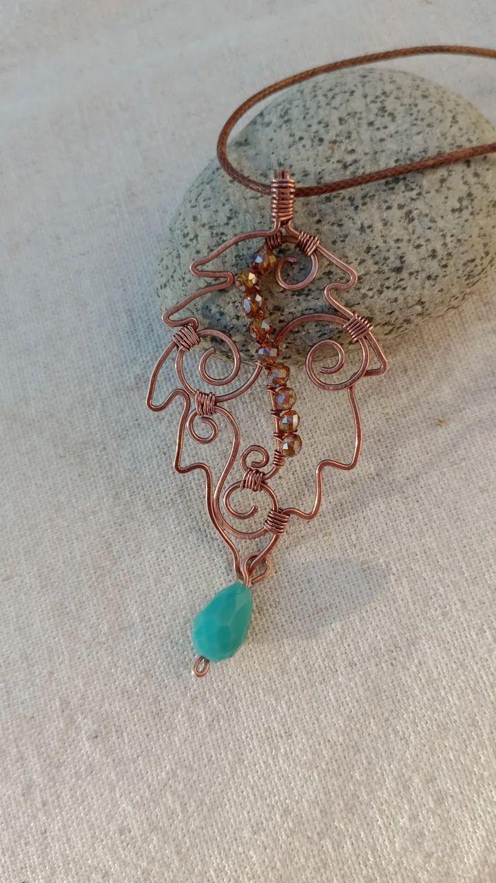 Colar com lindissimo pingente artesanal caprichosamente moldado, martelado e decorado à mão com cristais. Seu formato é o de uma folha e com a decoração de pequenos cristais se torna uma peça coringa, podendo ser usado com looks mais despojados ou mesmo com looks mais chiques.