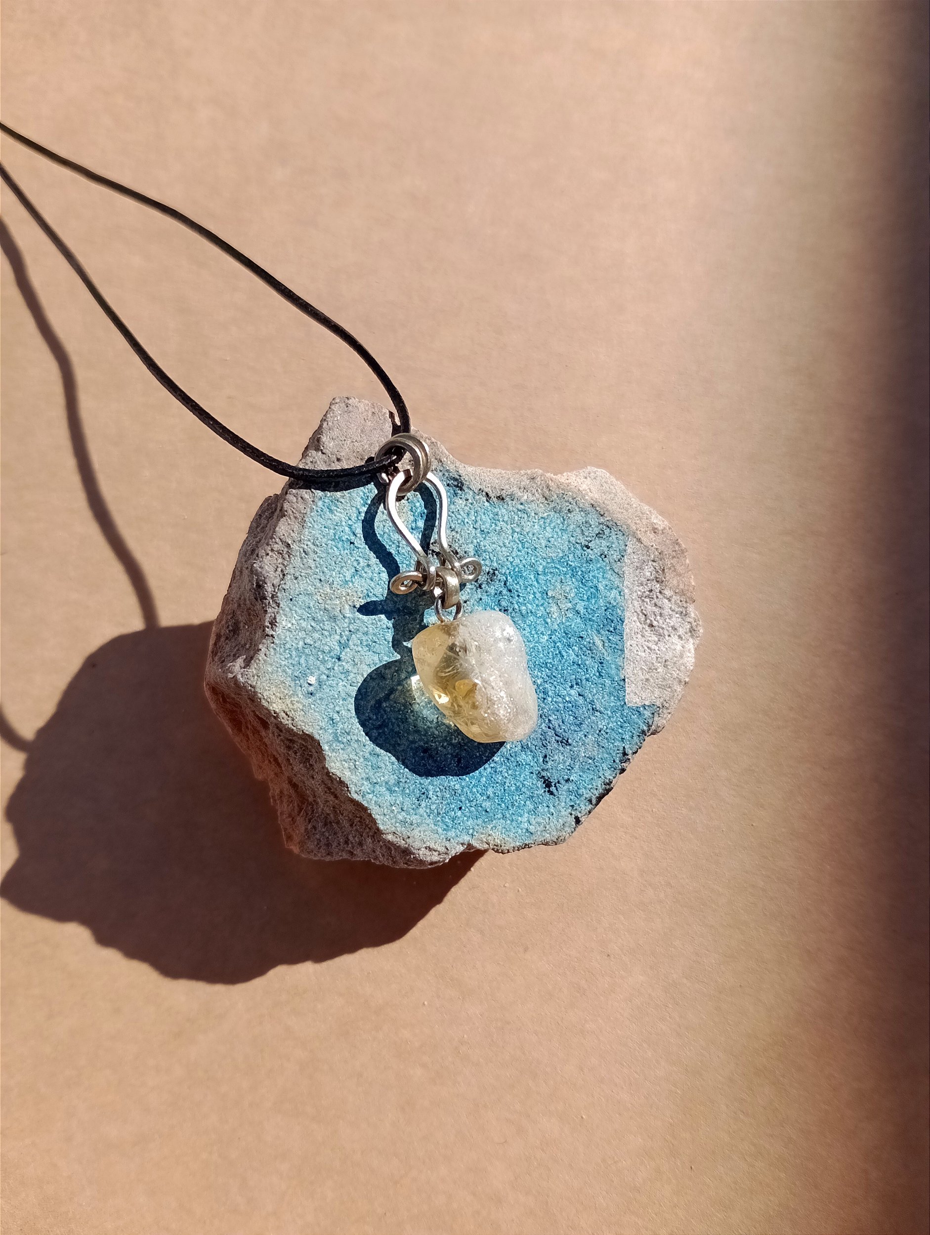 Um colar leve e discreto que tem como diferencial o trabalho elaborado todo feito à mão que sustenta o pequeno Citrino.